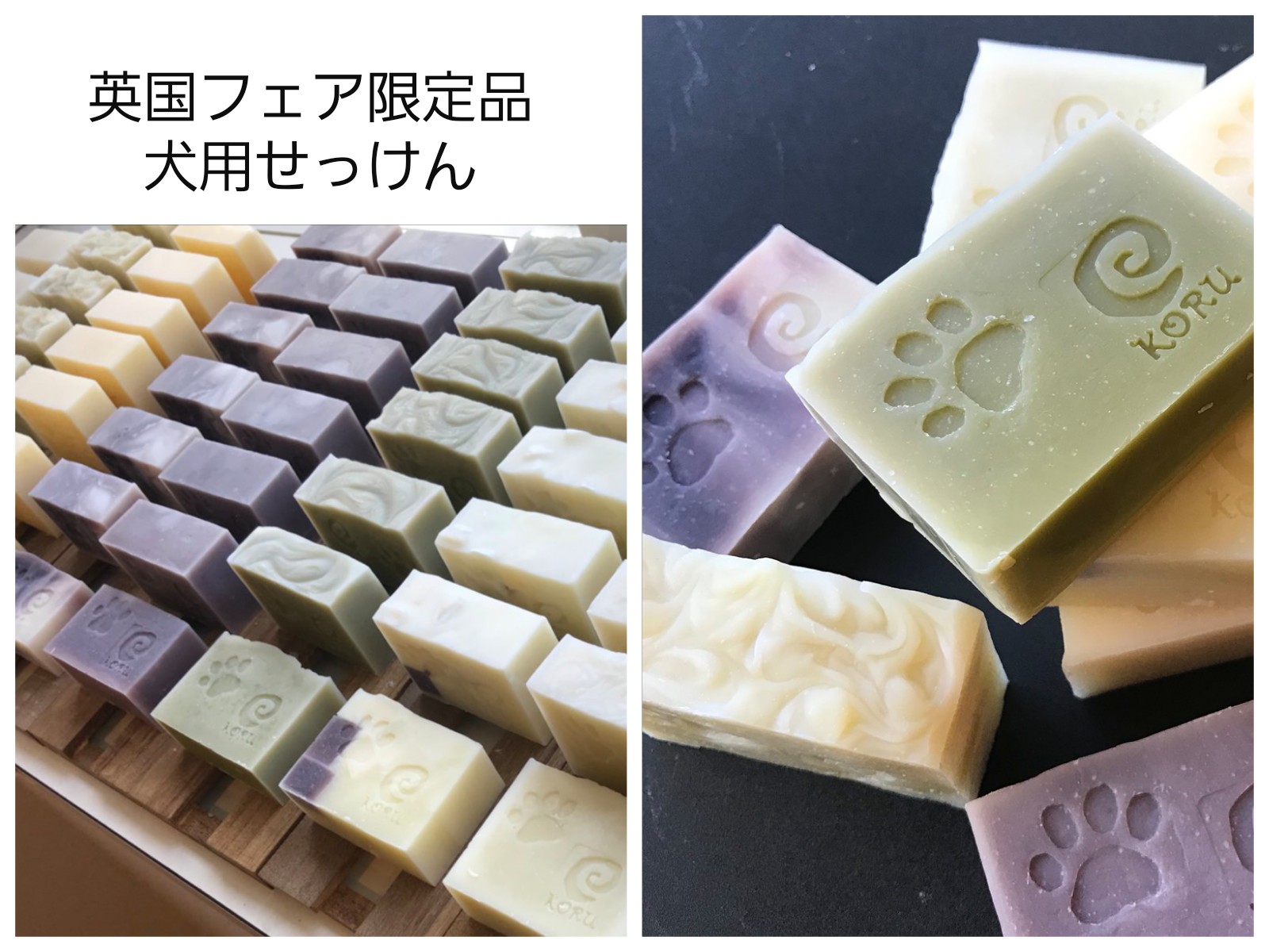 ARKのブースでは2019年ARKカレンダーをはじめ、このフェアのため、アロマ講師として活動されておりますアークの里親さまが犬用のせっけんを特別に作製してくださり、数量限定で販売します!