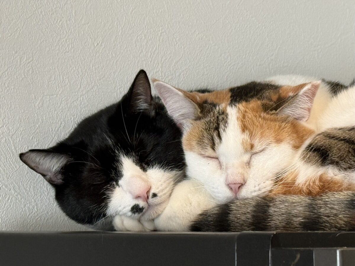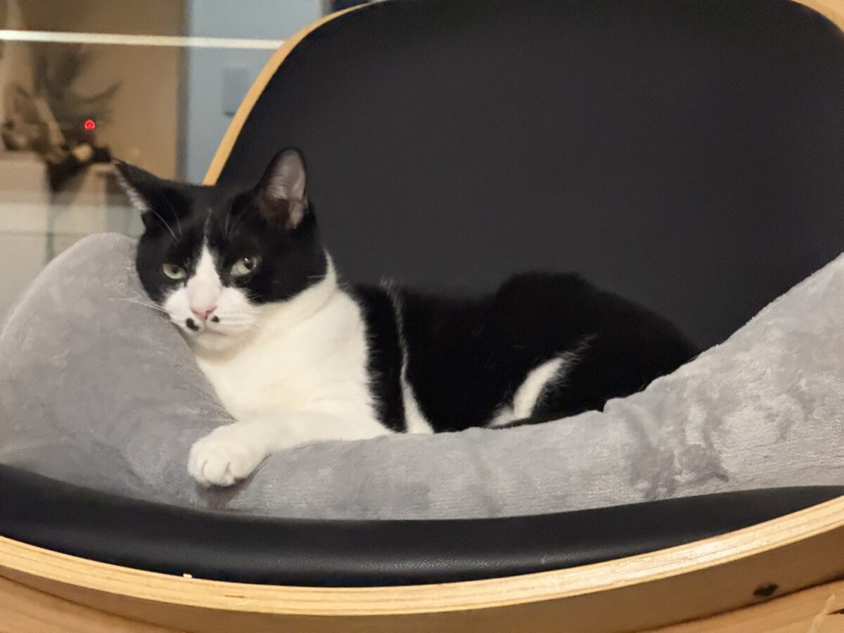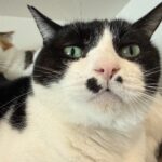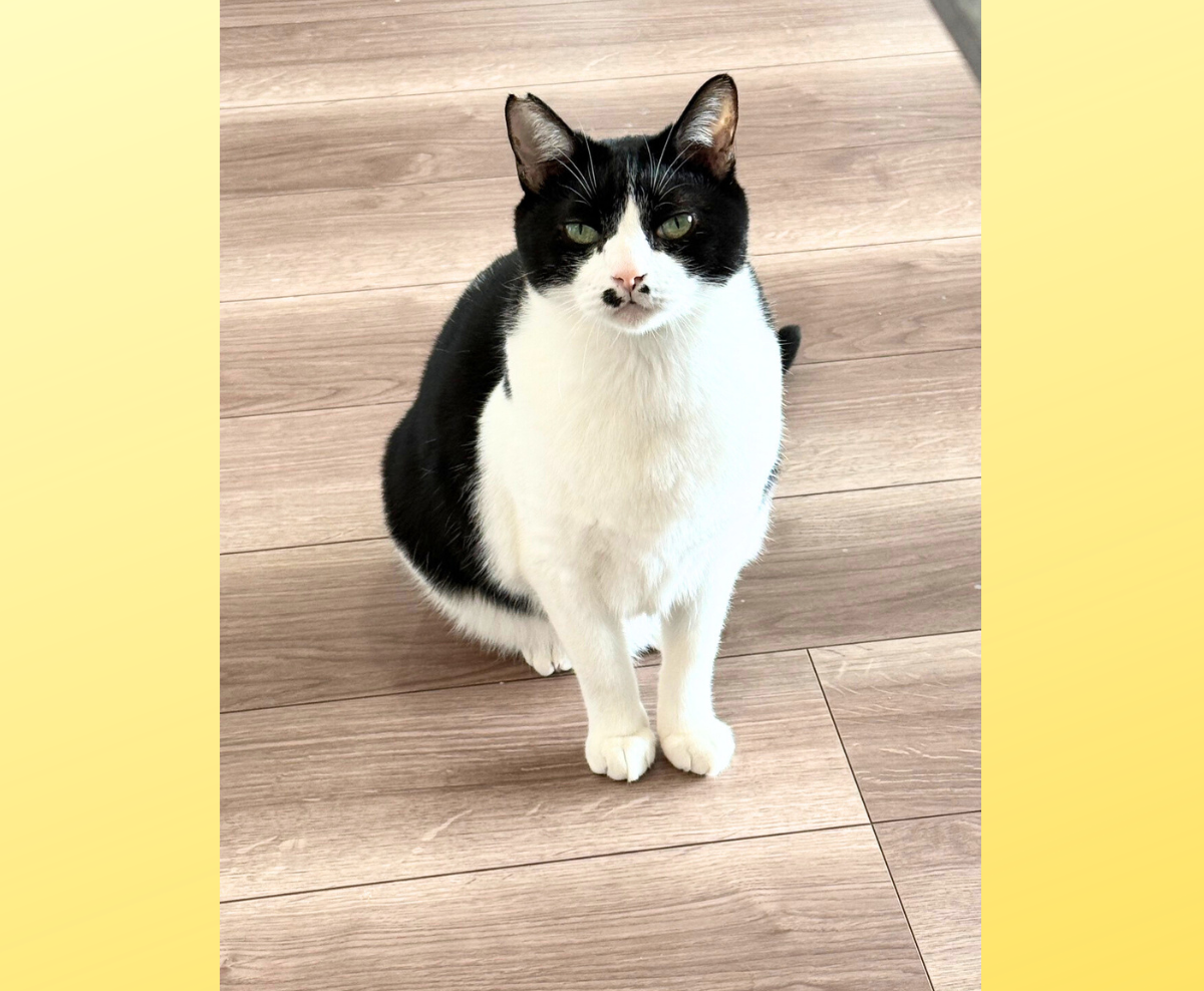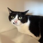 Cymbal’s standout features are definitely his adorable facial beauty spots! With his cute tuxedo pattern in tow, we think he is one dapper looking cat. When he first arrived at ARK, he was very anxious and scared of his surroundings and would often hide in the kotasu. He still does this from time to time, but now, he will pop his head out to see what is going on. Especially when food is involved! He seems to be interested in people, but would rather keep his distance to start with. Cymbal loves to hang out in high places and see what is going on below him. He is also very friendly towards other cats, so we hope families looking to add another cat to the home will come visit him! It may take Cymbal a little extra time to warm up to people, but if given plenty of time and space, you’ll be able to see for yourself what an easy going and sweet cat he is.