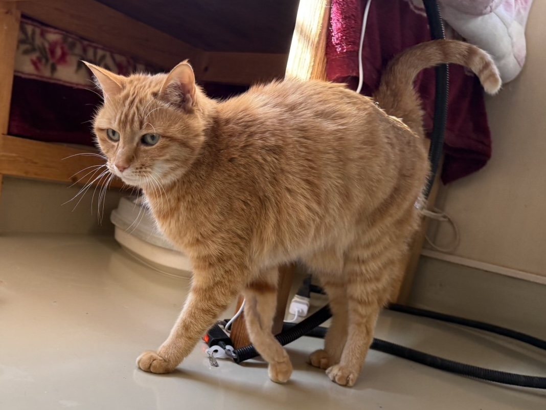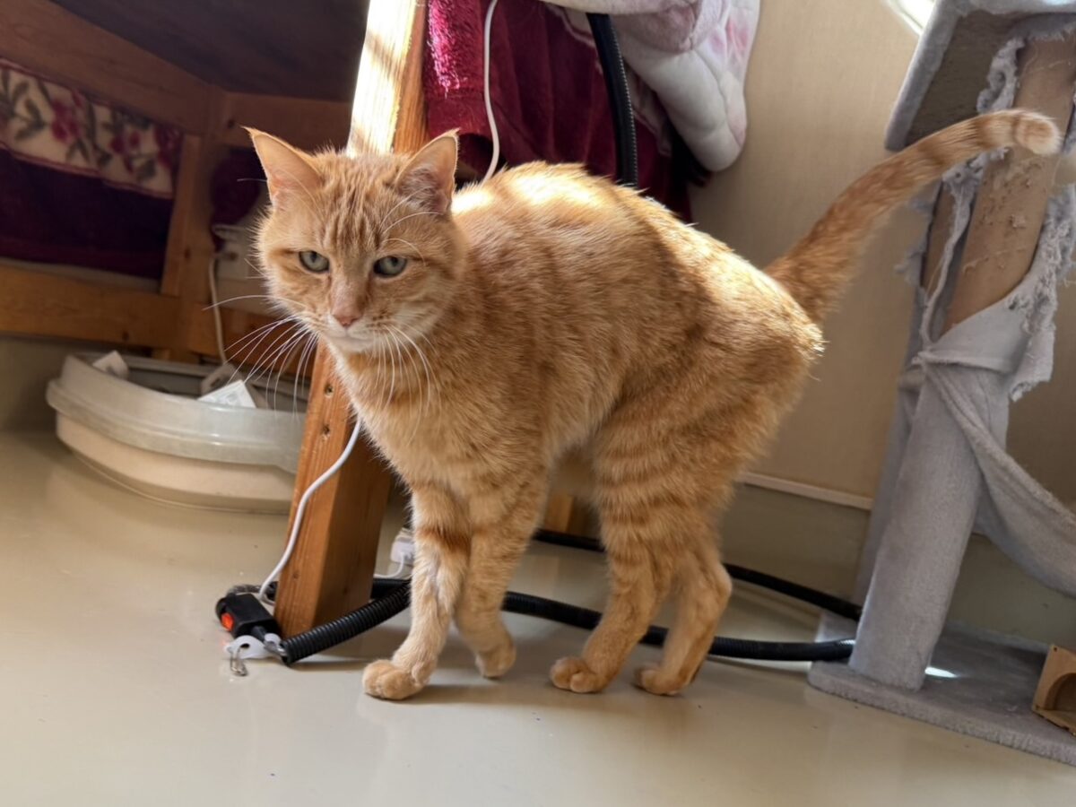 お部屋に人が入るとすぐに出てきてお出迎えするのが日課です。