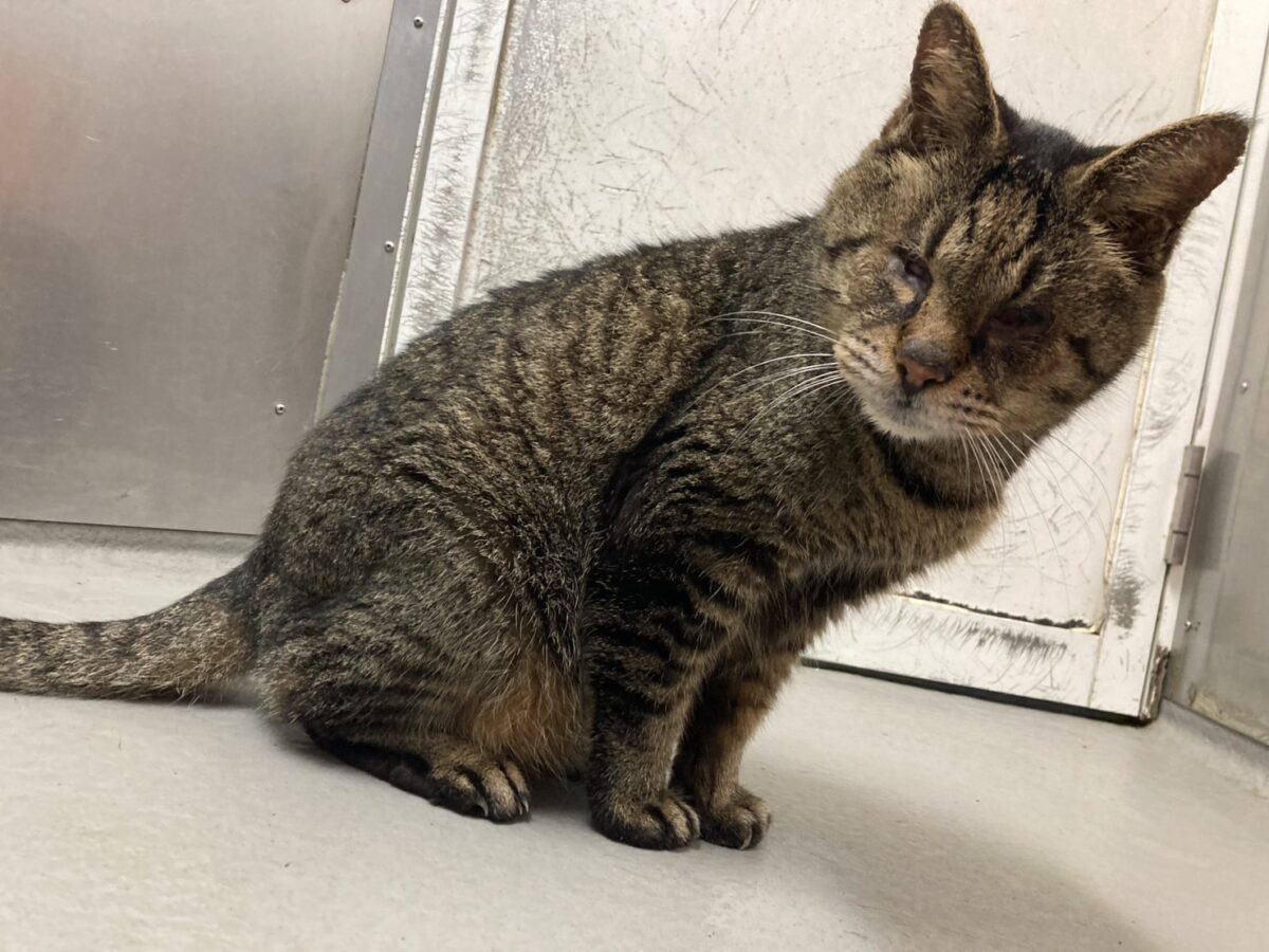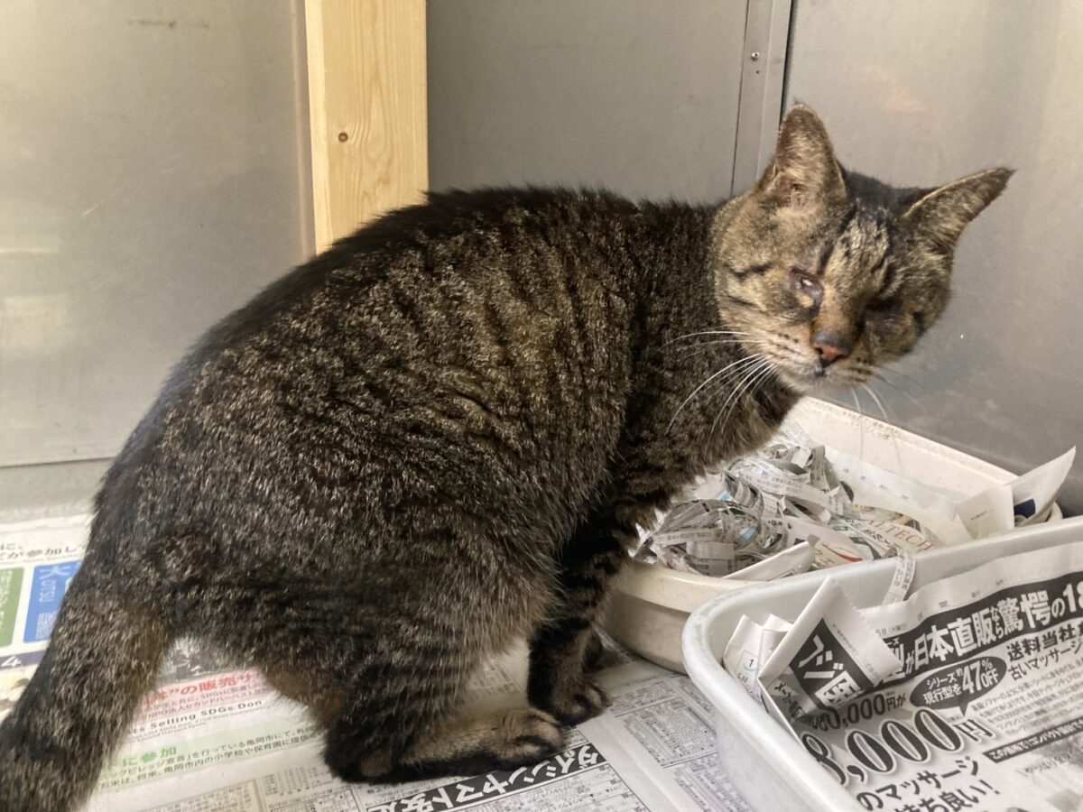 両目の視力がほとんどなく、基本的に目は閉じていますが、扉に反応したり猫じゃらしで遊んだりと完全に見えていない訳ではないようです。